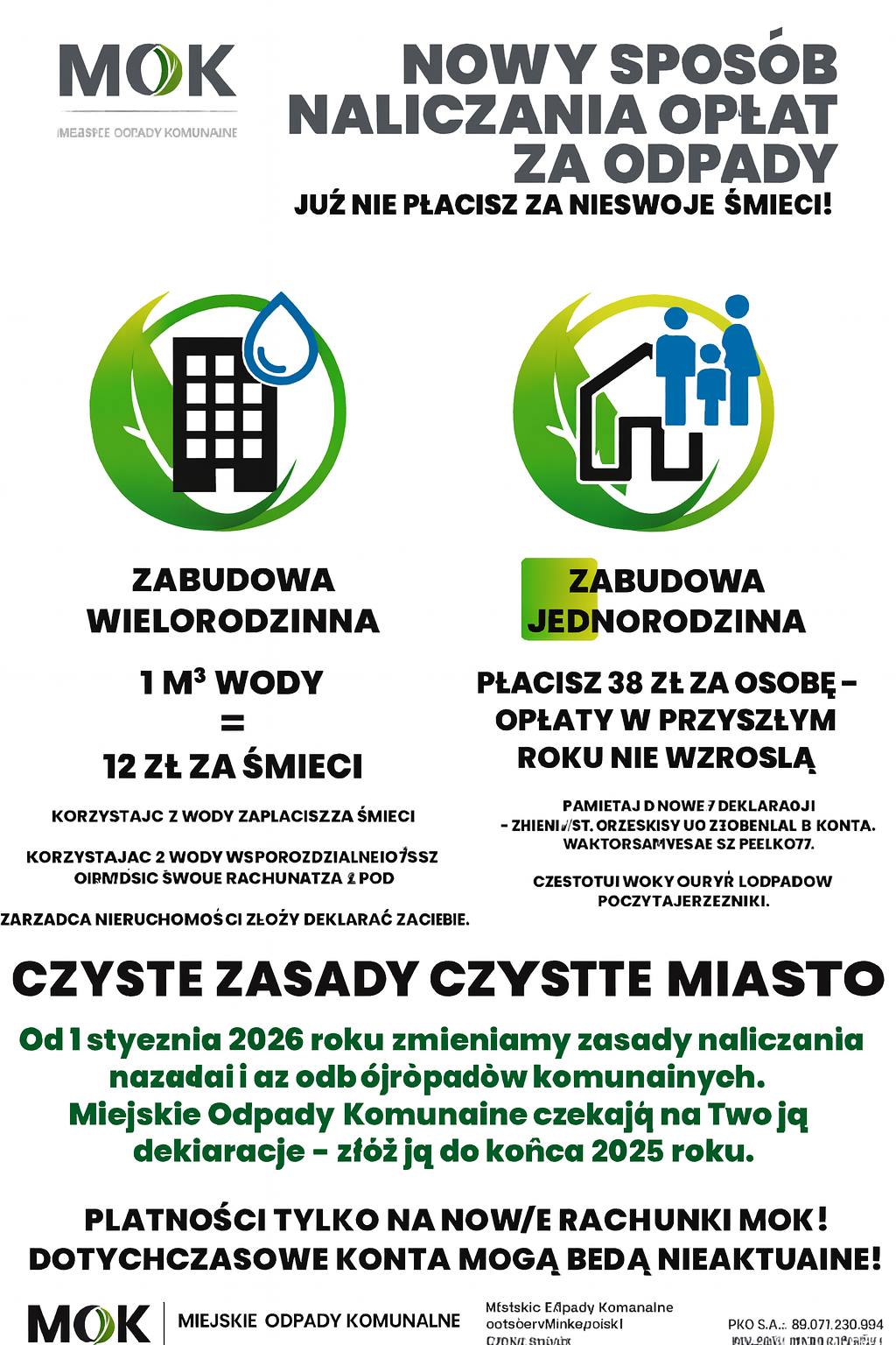 W komunikacie zaznaczono również, że od 2026 roku płatności będą przyjmowane wyłącznie na nowe numery rachunków MOK. Dotychczasowe konta Miejskiego Zakładu Gospodarki Odpadami (MZG) stracą ważność, dlatego mieszkańcy proszeni są o szczególną uwagę przy wykonywaniu przelewów.