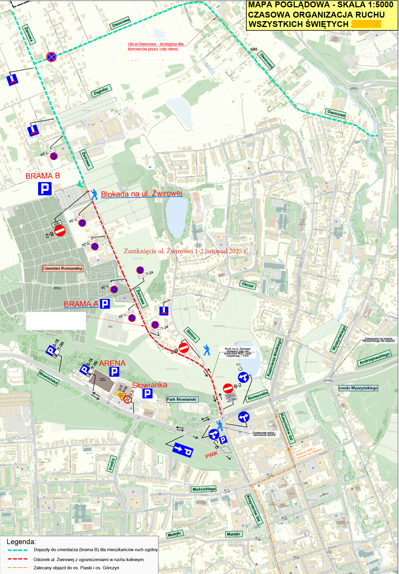 - dodatkowo w zależności od natężenia ruchu i zajętości parkingów przy ul. Żwirowej, zamknięcia wjazdu można spodziewać się również 31.10. (piątek) - o zamknięciu ulicy będzie decydować Policja.